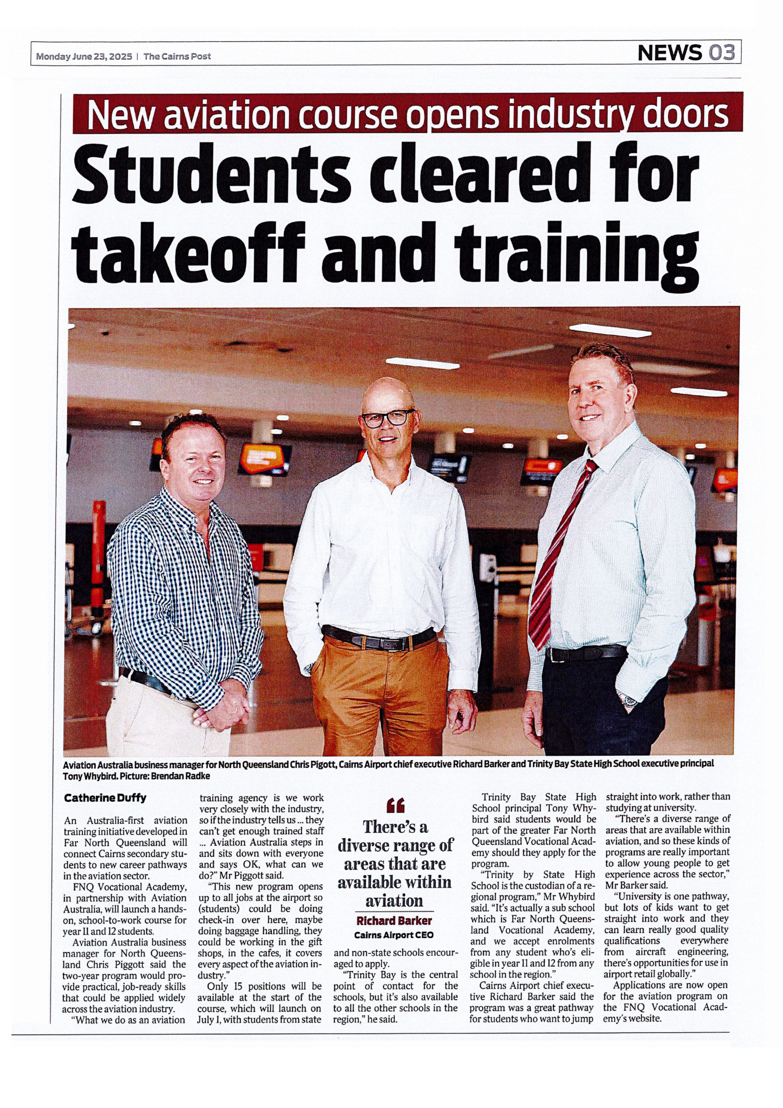 “Cairns is a gateway to some of Australia’s most remote regions and sees more passenger movements per resident than capital cities. This program positions Cairns as a national leader in aviation training and workforce development.”